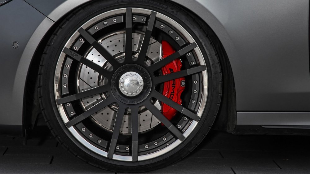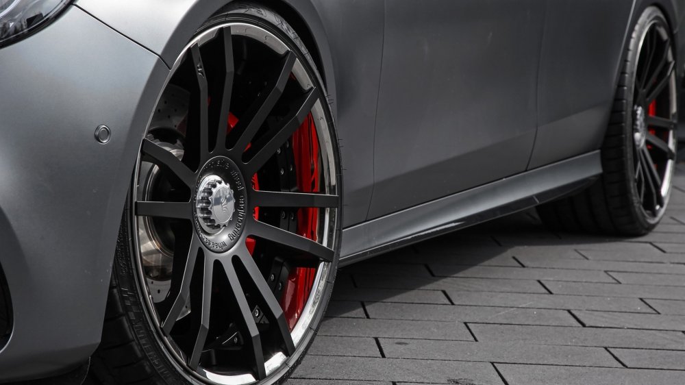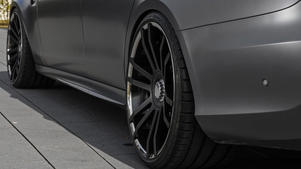 В ателье также предлагают установить на универсал спортивную подвеску регулируемую по высоте и набор эффектных колес размерностью 10x21 спереди с шинами 265/30/21 и 11x21 сзади с шинами 295/25/21.