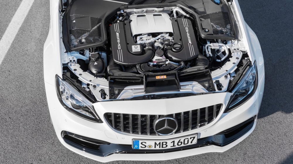 Моторная гамма осталась прежней. Под капотом обновлённого Mercedes-AMG C 63 располагается четырёхлитровая «битурбовосьмерка» с отдачей 476 л.с. и крутящим моментом 650 Нм. Мощность двигателя модификации C 63 S составляет 510 л.с. (крутящий момент – 700 Нм).
