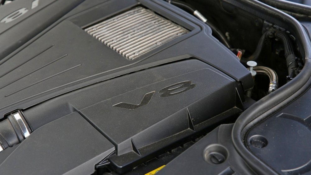 Хотя если честно, то посмотреть-то толком и нельзя: под капотом всё очень тесно скомпоновано и наглухо закрыто от посторонних глаз. А ведь тут полный набор всех современных технологий: алюсиловое покрытие цилиндров, непосредственный впрыск, двойной турбонаддув (по одному турбонагнетателю Honeywell Garrett на каждый ряд цилиндров с давлением 0,9 бар), регулируемый маслонасос, система ЕГР… И куча жалоб на работу всех этих чудес.