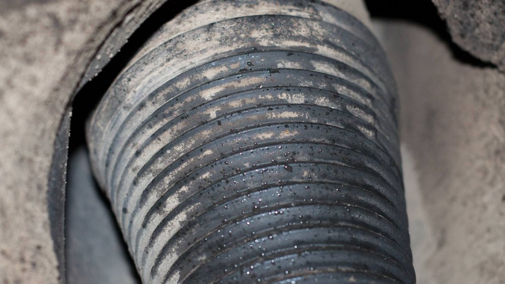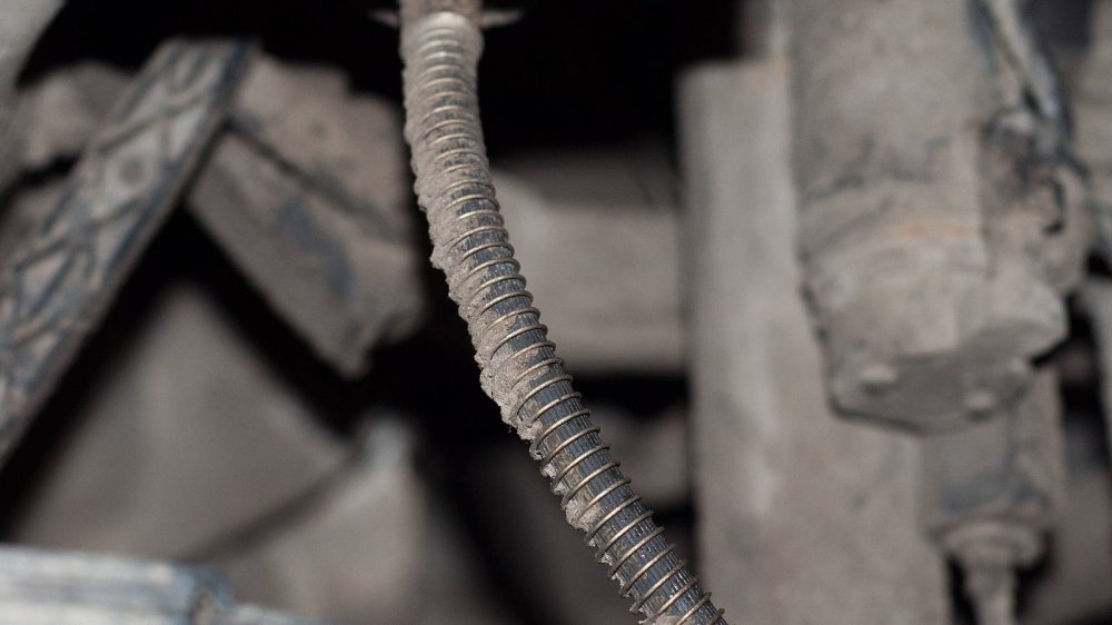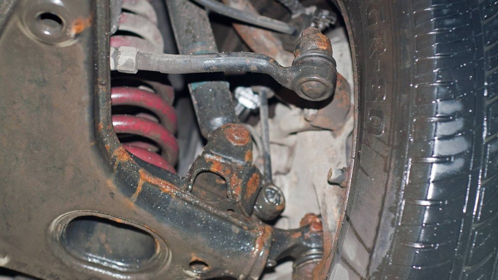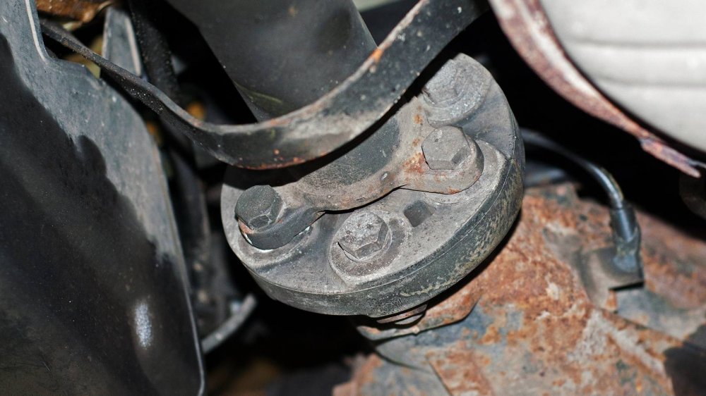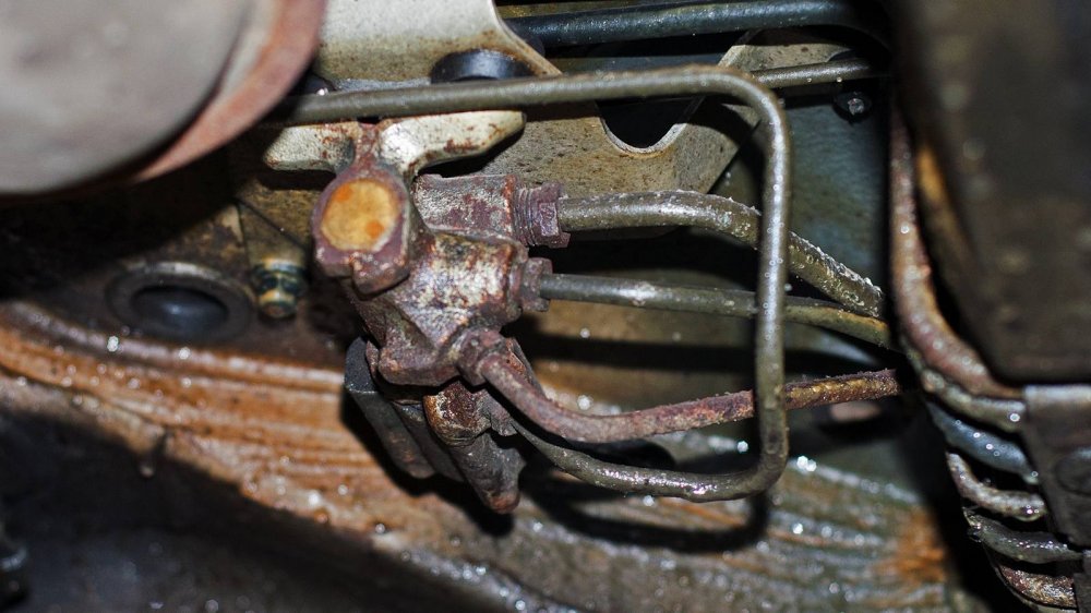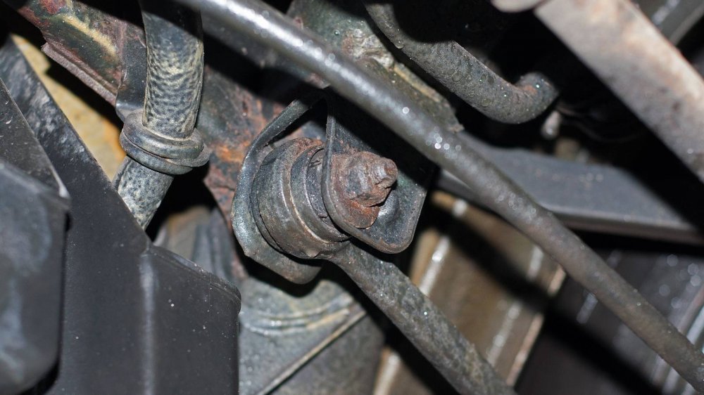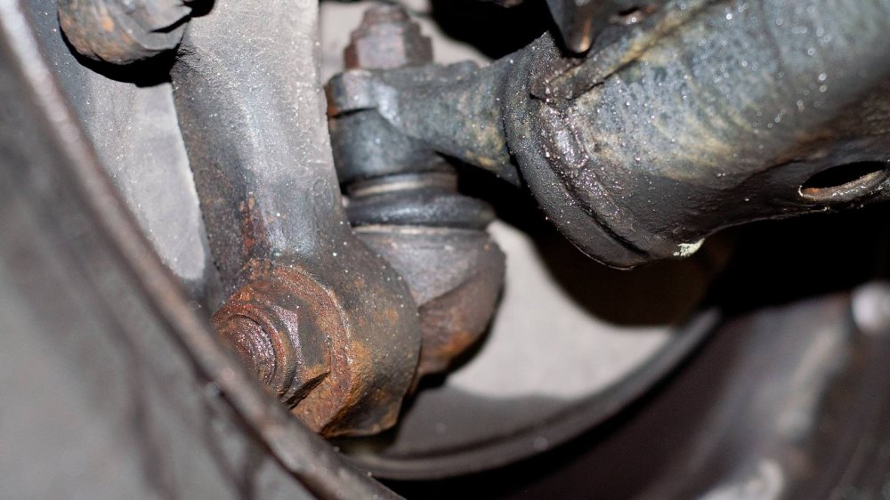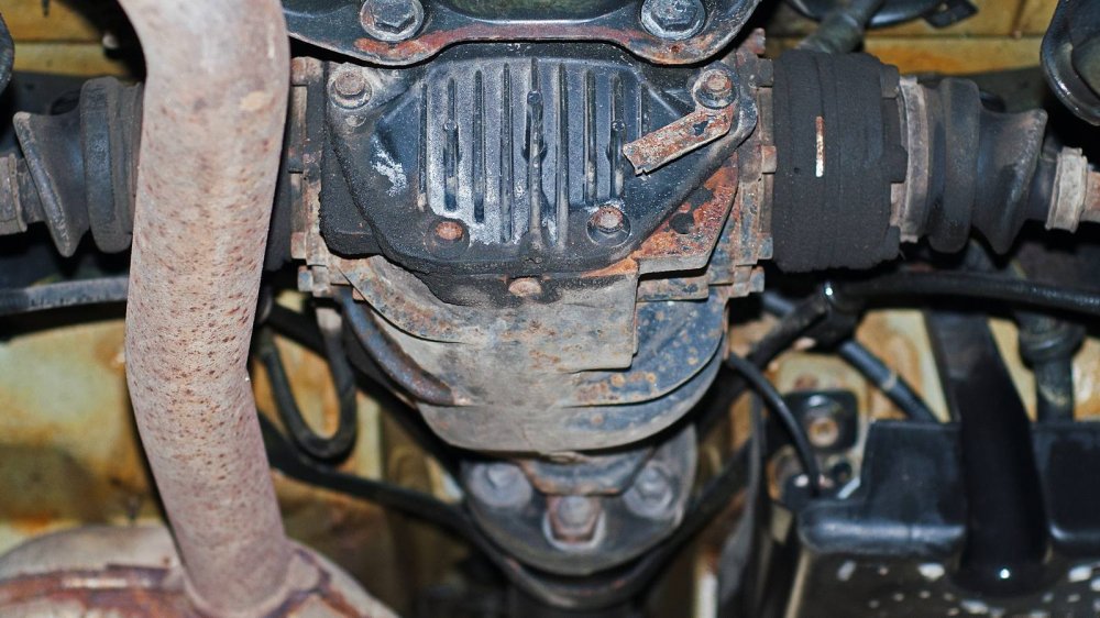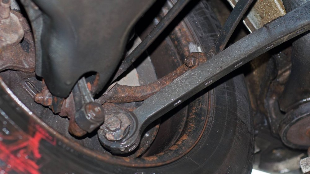 Подход к защите нижних элементов у W140 совершенно другой. Тут толком ничего не защищали, а просто делали все детали прочными сами по себе. Например, обратите внимание на глушитель. Кажется, что он скоро прогниёт насквозь. Но нет. То, что кажется страшной коррозией “банки”, на самом деле затронуло лишь её внешний защитный слой. Сам глушитель будет ржаветь ещё несколько лет.