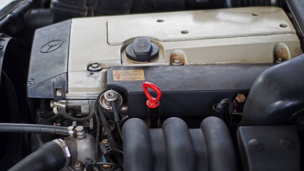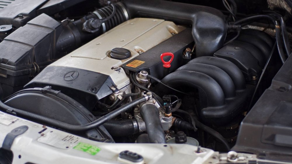 Начнём с мотора нашего “дедушки” в кузове W140. У нас тут стоит, пожалуй, самый простой двигатель из тех, что можно было встретить на этих машинах.