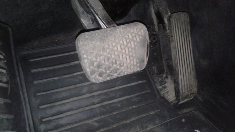 А теперь отгибаем коврик в ногах водителя.Вот обидно даже. Мог бы перекуп хотя бы плесень убрать! Уж коли с рулём и педалями не справился…