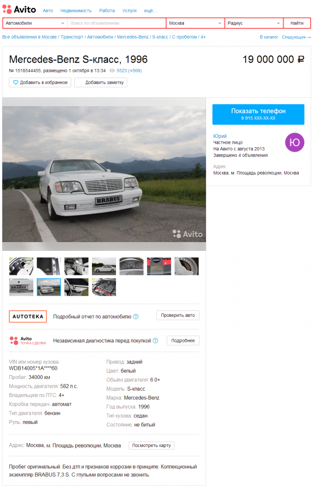 На наш взгляд, этот W140 Brabus 7.3, к сожалению, утратил свою аутентичность – но если вкусы работавших над ним тюнеров совпадут со вкусами нового владельца, у него вполне есть шансы продолжить жить той жизнью, для которой он был рожден в далеком 1997-м. Правда, для этого потенциальный новый владелец должен влюбиться в него настолько, чтобы отдать за него сумму, превышающую стоимость нового S-класса. А взамен Brabus предложит высочайшую уникальность: в продаже такие машины появляются штучно, и сейчас в продаже лишь один подобный представитель элиты трехлучевого общества.