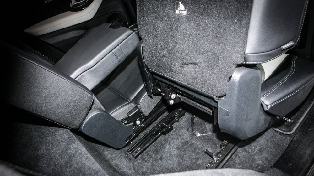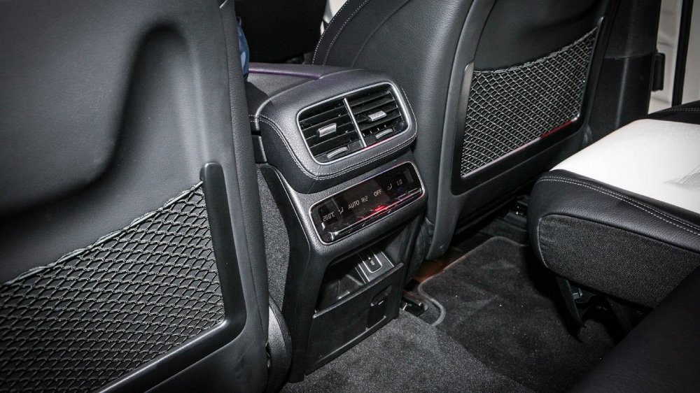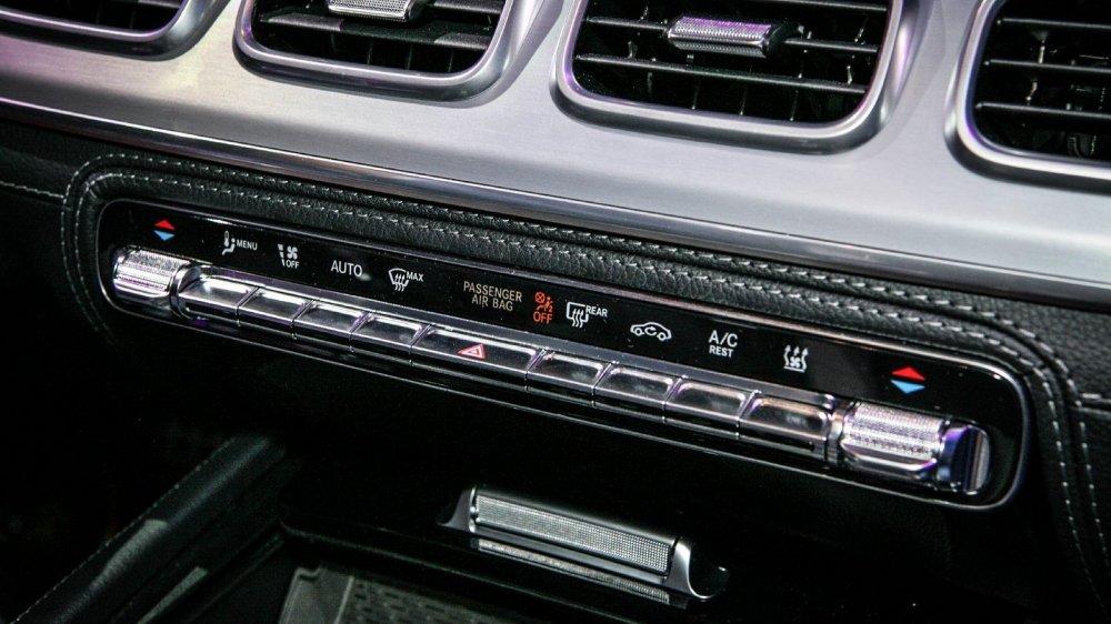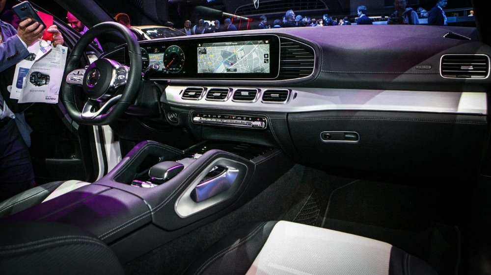 Электродвигатель, установленный между мотором и 9-ступенчатой коробкой, в режиме генератора возвращает энергию в 48-вольтовый аккумулятор, откуда её черпают различные энергозатратные системы: не только активная подвеска, но ещё и насос системы охлаждения, кондиционер и прочее. Вообще, электричества новому GLE теперь нужно больше. Скажем, опционально сиденья второго ряда управляются посредством электропривода, а для облегчения доступа на третий ряд сидений инженеры Daimler предусмотрели отдельную кнопку. Она расположена на верхней кромке спинки бокового кресла второго ряда и даёт команду на продольное смещение кресла: подушка приподнимается, а спинка опускается. Третий ряд будет доступен в GLE опционально — напомним, это было предусмотрено ещё на первом поколении M-klasse.