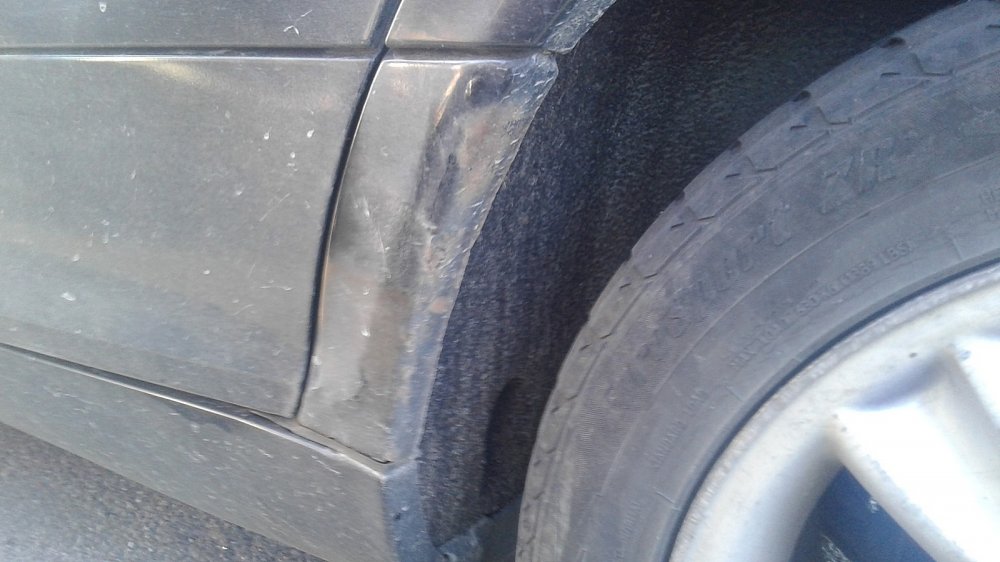 Итак, что с машиной? Она почти полностью в родной краске, но арки всё-таки перекрашены. Причём дважды, и оба раза — плохо. Слой ЛКП неровный, отличается по цвету, да и ржавчина из-под него уже опять лезет наружу.
