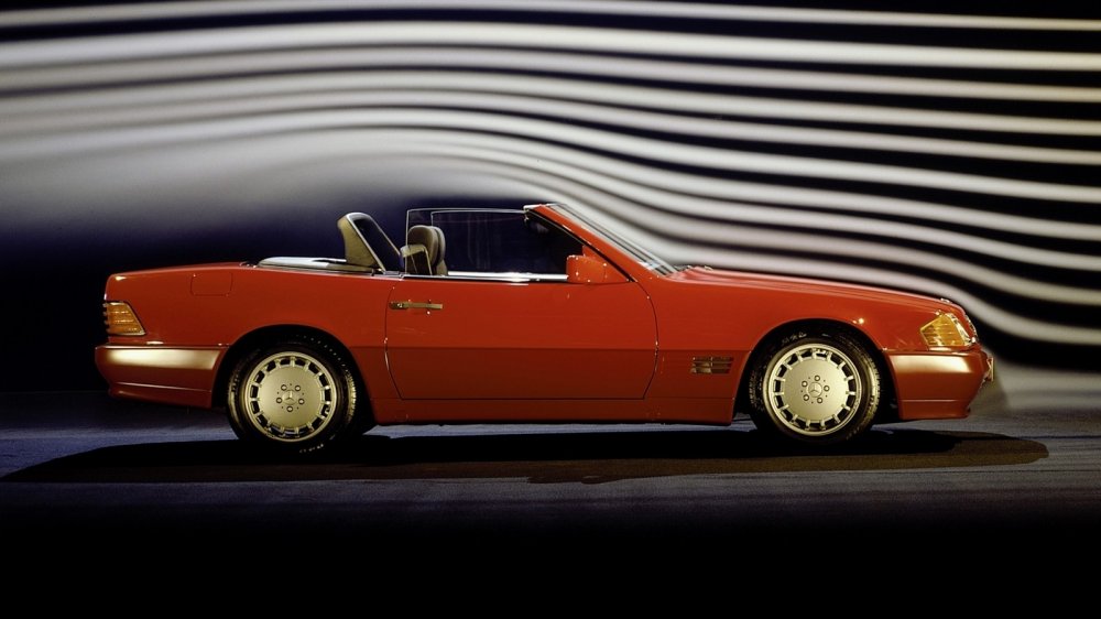 Всем своим видом SL говорит, что его дизайном начали заниматься еще в восьмидесятые – годы, когда до округлостей было далеко, а угловатые формы подчеркивали строгость и качество. Кабриолет был построен на укороченном шасси легендарного W124 – того самого, который чуть позже дал начало имени E-klasse. Однако несмотря на то, что дебютировал R129 на Женевском автосалоне 1989 года, он получил немало продвинутых технологических решений как по части оснащения, так и в области безопасности. К примеру, на последнюю работала скрытая дуга безопасности, автоматически выдвигающаяся при перевороте, чтобы спасти обитателей салона, а любителей технических штучек радовала дорогая музыка, опциональный штатный телефон, ксеноновые фары, датчик дождя и другие «фишки».