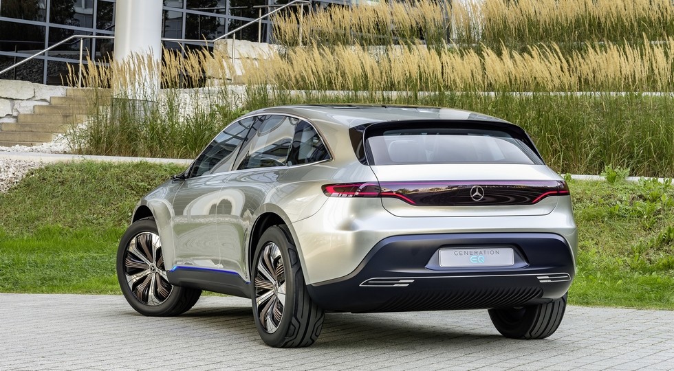 Внешне серийный Mercedes-Benz EQC отличается от прототипа. У товарного электрокросса спереди появилась фальшивая хромированная решетка радиатора, тогда как у его предвестника «решетка» была с «нарисованными» светодиодами. Другими стали и задние фонари – как и у концепта, они соединены между собой светодиодной полоской, но их форму поменяли.