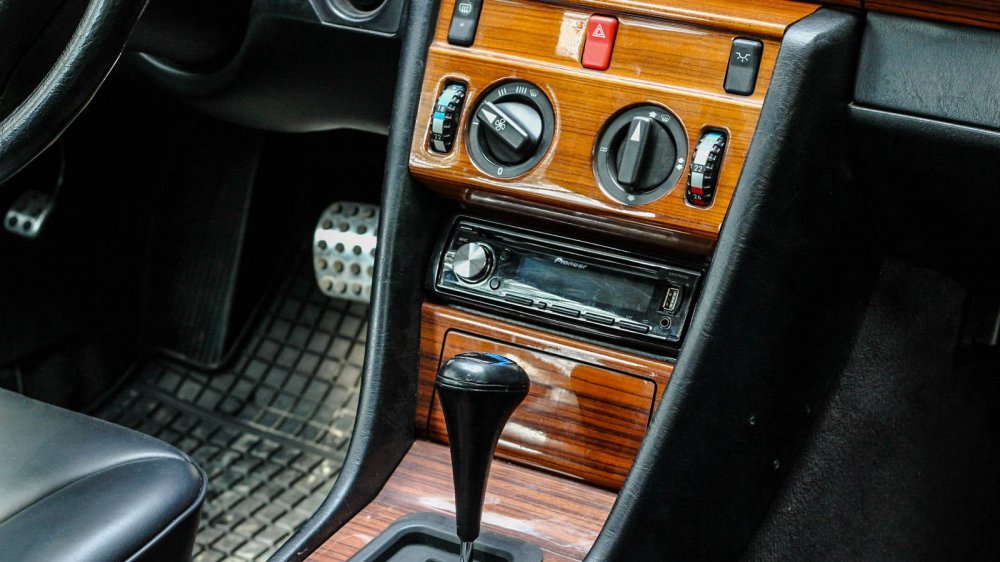 В сравнении с современными Mercedes-Benz узнаваем только пульт электрорегулировок кресел. Все остальное — милое сердцу ламповое ретро, отлитое из кажущегося вечным пластика и декорированное деревом а-ля бабушкин комод. Комплектации далеко до полной, но кем надо быть, чтобы жаловаться на жизнь, восседая в кожаных креслах, имея при этом двухзонный климат и электроприводы всего, включая люк, плюс атрибуты версии Sportline?