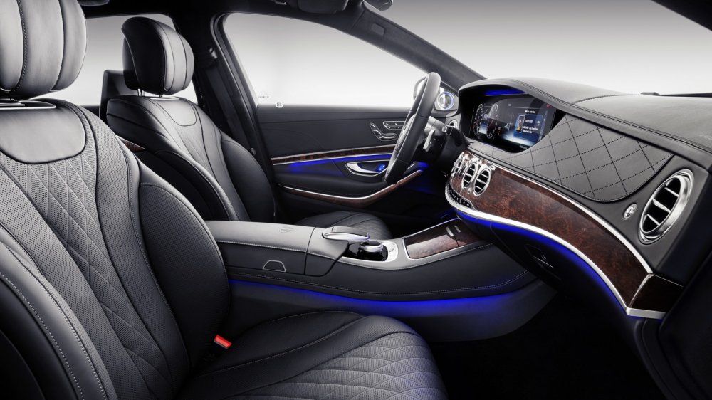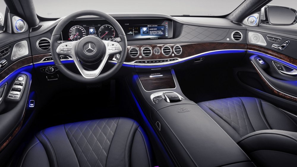 Помимо этого, у Mercedes-Maybach S-Class расширен ассортимент дизайнов колес, который, кстати, пополнился дисками, устанавливаемыми на лимитированную серию роскошного кабриолета Mercedes-Maybach S 650. Кузов автомобиля теперь может быть двухцветным (девять вариантов сочетаний), или получить глубокий окрас – на краску наносится несколько слоев лака, каждый из которых полируется ручным способом, а еще добавлены новые варианты интерьерной отделки.