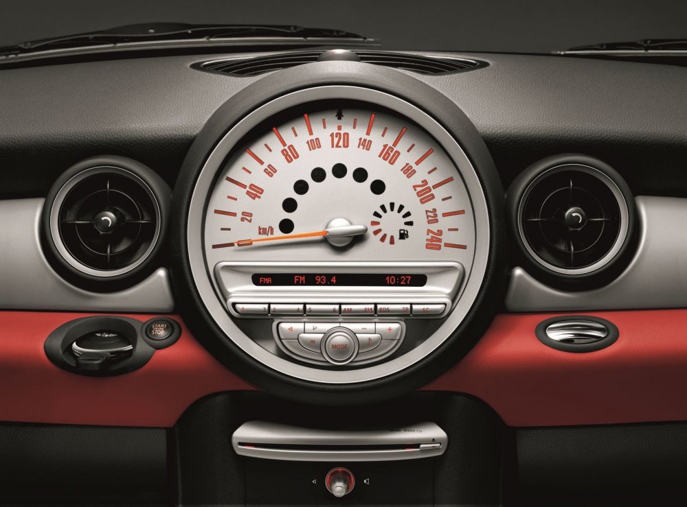 Есть претензии и к эргономике, ведь она – это не только форма и взаиморасположение кресла, руля и педалей. Это еще и органы управления, а тут дизайнерская мысль порой входит в противоречие с удобством. Например, основную «фишку» интерьера Mini, огромный спидометр, расположенный по центру передней панели, очень многие из владельцев считают вещью абсолютно бесполезной, поскольку им гораздо удобнее контролировать скорость по цифровому индикатору внизу тахометра, находящегося на рулевой колонке.