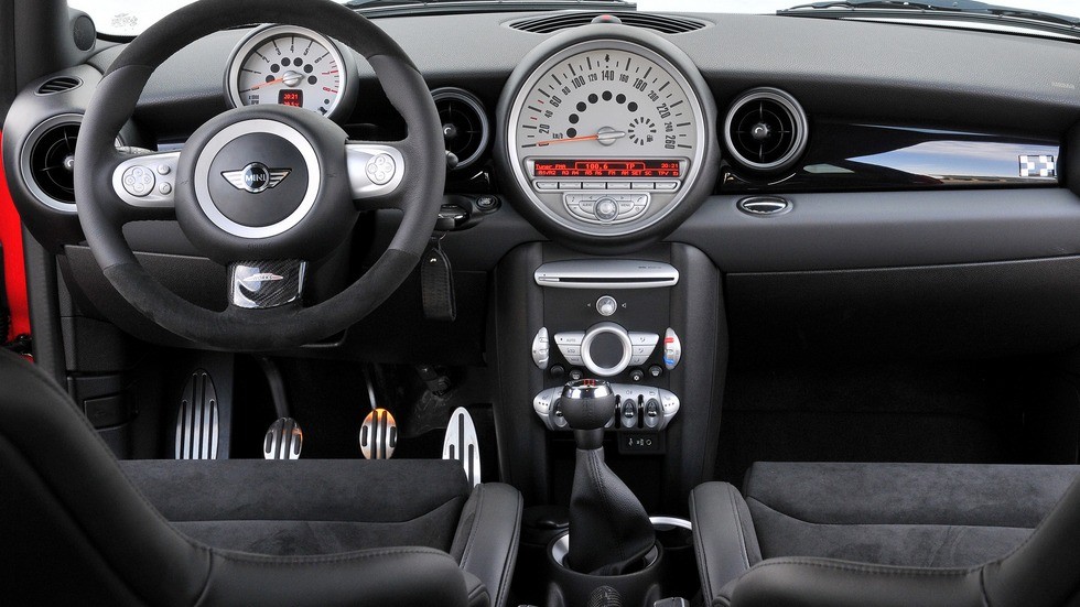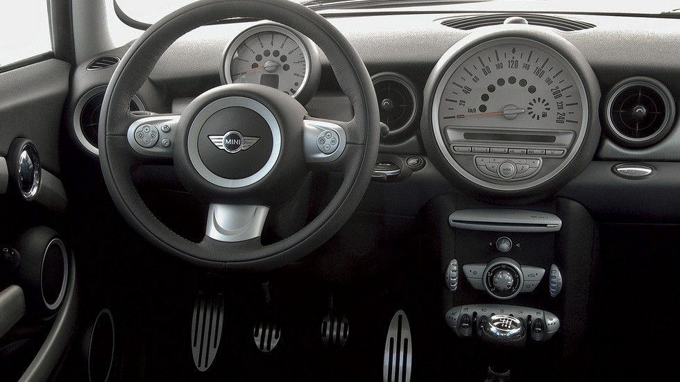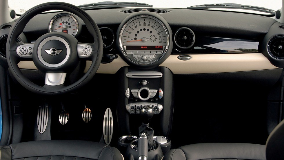 А в 2006 году не было и необходимости менять силовую структуру. Если вы читали обзор про Mini R50/R53, то знаете, что внешние панели по большей части были чисто декоративными. Только задние крылья и задняя дверь — это "фиксированные" стальные элементы. Так что поменять дизайн не было проблемой вообще, а внутри все такой же практичный и прочный каркас. Стиль оформления салона также оставили прежним, а самый бросающийся в глаза элемент, «блюдце» спидометра по центру, остался и вовсе неизменным.