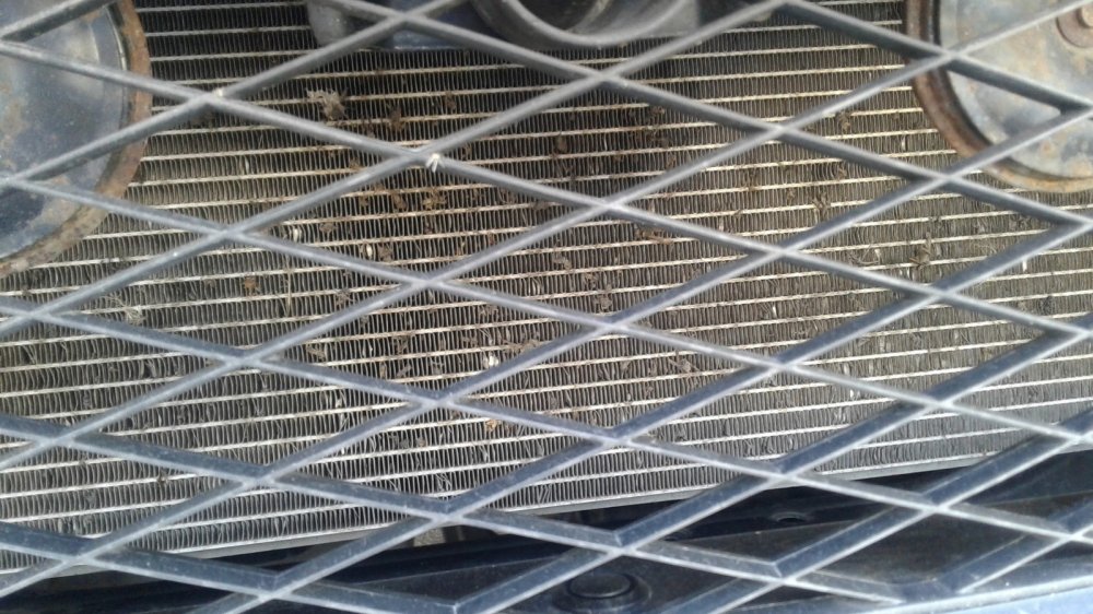 Напоследок замечу одну интересную деталь: через ячейки решётки виден фрагмент радиатора системы охлаждения, стоящий за радиатором кондиционера. И эта его часть вообще похожа на монолитный кусок грязи, что очень и очень плохо.