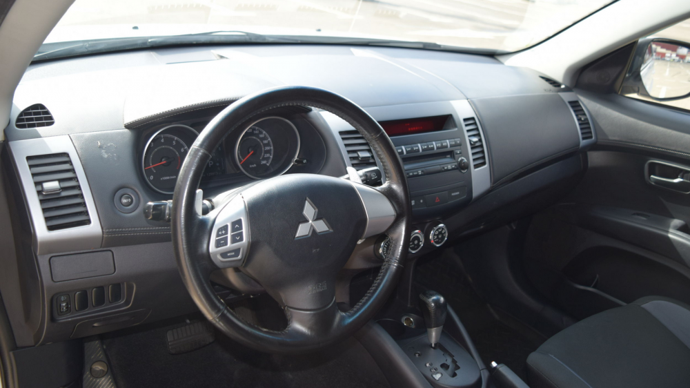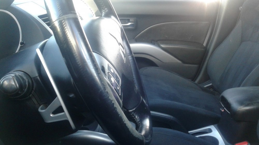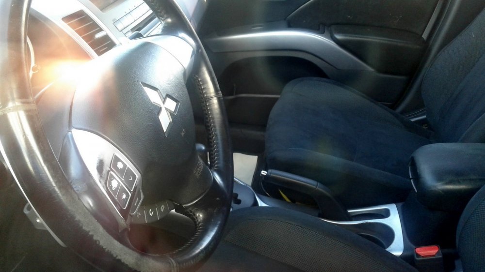Салон Аутлендера, к сожалению для продавца и к счастью для покупателя, плохо скрывает пробег. Особенно сильно его выдают руль и кнопки стеклоподъёмников. Кстати, если водитель курящий, кнопка его стеклоподъёмника обычно изнашивается намного быстрее, чем все остальные кнопки и кнопка машины с некурящим водителем. В этой машине всё немного сложнее: владелец не только курит, но ещё и не признаёт уборку салона как явление, поэтому то, что кажется износом, на самом деле больше потёртости в грязи, а не износ. Вообще тут не мешало бы хорошо отмыть салон, тогда продать машину будет проще. Сохранился он соответственно пробегу, скрывать нечего, так что мойка (а лучше — химчистка) не помешает.