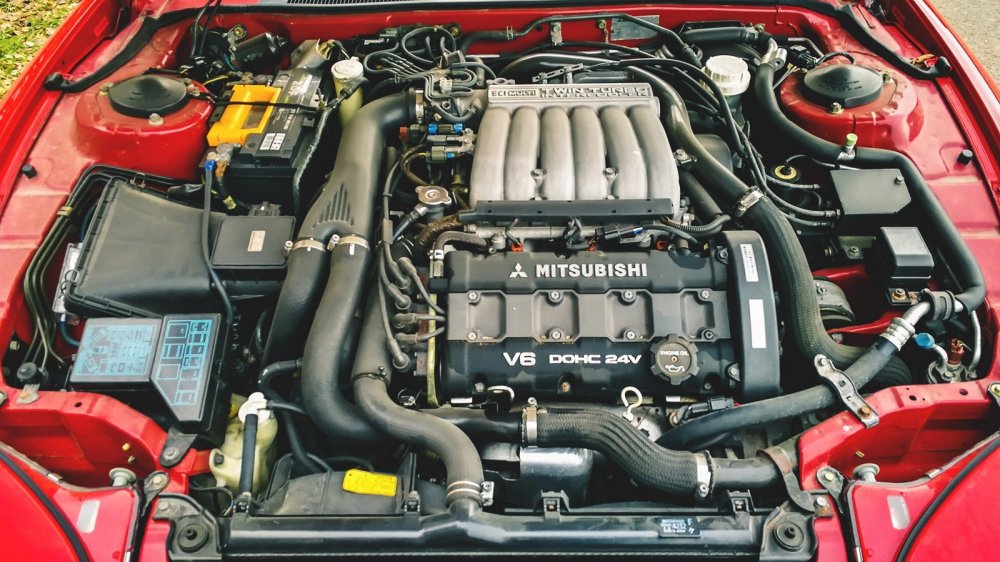 Рестайлинговый 6G72 с турбинами TD04-9b (максимальное давление 0,8 бар против 0,7 бар у дорестайла) заряжен на 320 л.с. и 315 Нм крутящего момента (против 300 л.с. и 307 Нм у версий до 1994 года выпуска). Совсем другой зверь, который передает пламенный привет Pajero, L200 и ещё паре десятков родственников от Chrysler и Mitsubishi.