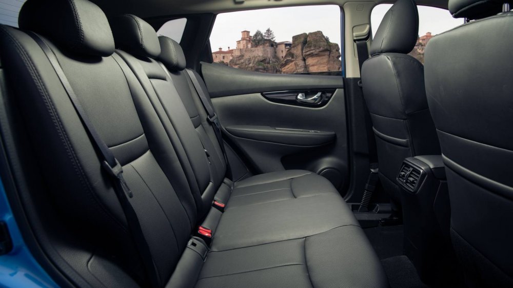 Ещё по салону добавились несущественные опции, такие как кожаная обивка на одной из секций центральной панели, регулировка поясничного подпора сиденья водителя и подогрев подушек и нижних половин спинок боковых секций заднего дивана. В недрах багажника теперь можно обнаружить не только полноразмерное запасное колесо, которое прежде было безальтернативным. Сейчас оно осталось в трёх самых «низких» версиях полноприводной модификации. Всё, что дороже или без привода задних колёс, теперь идёт исключительно с «докаткой». По мнению конструкторов, именно владельцы «базовых» полноприводных Кашкаев чаще остальных съезжают с асфальта, поэтому вероятность прокола у них выше.