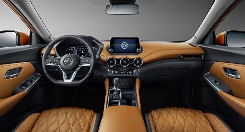 Дизайн экстерьера – типичен для современных легковушек Nissan, и в этом смысле Sylphy мало чем отличается от представленного двумя днями ранее в США бюджетного седанчика Versa, а вот интерьер приятно удивил! Страшно сказать, но передняя панель, особенно в районе центральной консоли, напоминает суперкары Ferrari – цветовым оформлением, кожаным верхом и формой воздуховодов. В верхней части установлен сенсорный 8-дюймовый экран мультимедийной системы, у которого, однако, для пущего удобства есть две аналоговые крутилки по краям и физические горячие клавиши по нижнему периметру.