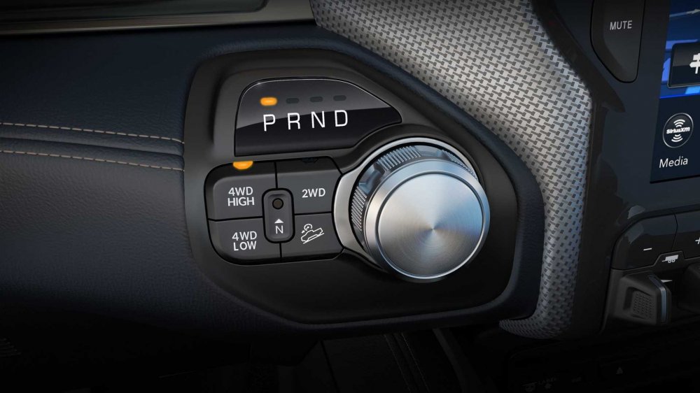 Для автомобиля предусмотрены три двигателя на выбор: базовый бензиновый 6,4-литровый V8 HEMI (415 л.с., 581 Нм) и новый 6,7-литровый турбодизель Cummins с двумя степенями форсировки: младшее исполнение выдаёт 375 л.с. и 1152 Нм, старшее – 405 л.с. и 1356 Нм. По крутящему моменту топовый Cummins превосходит фордовский дизель V8 Power Stroke (1268 Нм), что ставится на пикапы F-Series, и джи-эмовский Duramax V8 (1234 Нм), которым снабжаются Chevrolet Silverado HD, так что Ram HD отныне по праву считается самой тяговитой моделью в своём классе. В пару к могучему дизелю ставится 6-ступенчатая гидромеханическая АКП японской фирмы Aisin, а бензиновый агрегат идёт в комплекте с родной 8-ступенчатой коробкой TorqueFlite. Любопытно, что у бензиновых версий селектор «автомата» выполнен в виде шайбы и располагается справа внизу от руля, а дизельные щеголяют традиционной кочергой.