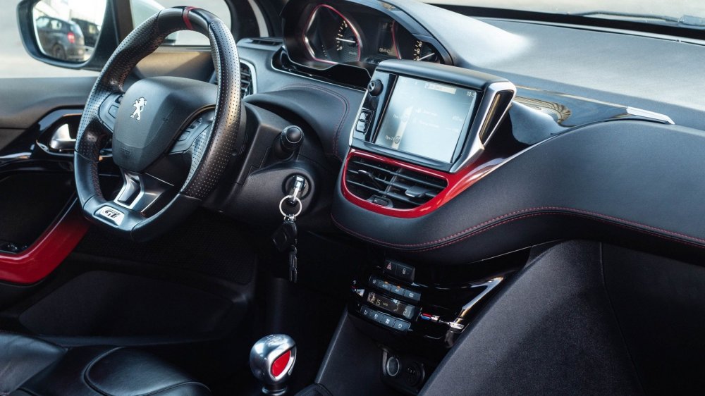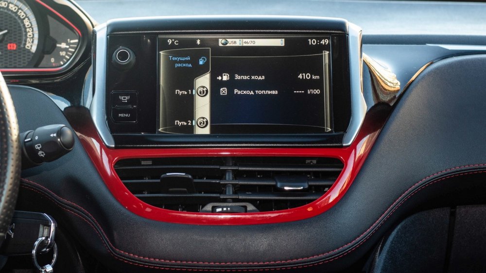 Шесть лет назад переосмысленный интерьер 208 казался авангардом, да и сейчас буйство волн и наплывов тревожит глаз новичка. Особенно заметен переехавший ближе к лобовому стеклу приборный щиток, который до сих пор кажется надуманным решением – впрочем, на удобстве считывания информации это никак не сказывается. Особенно когда шкалы озарены алой подсветкой, являющейся прерогативой горячего хэтчбэка. GTi вообще повернут на красном. Цвет страсти везде, на каждом элементе интерьера, будь то частично обернутая в кожу передняя панель или органы управления.