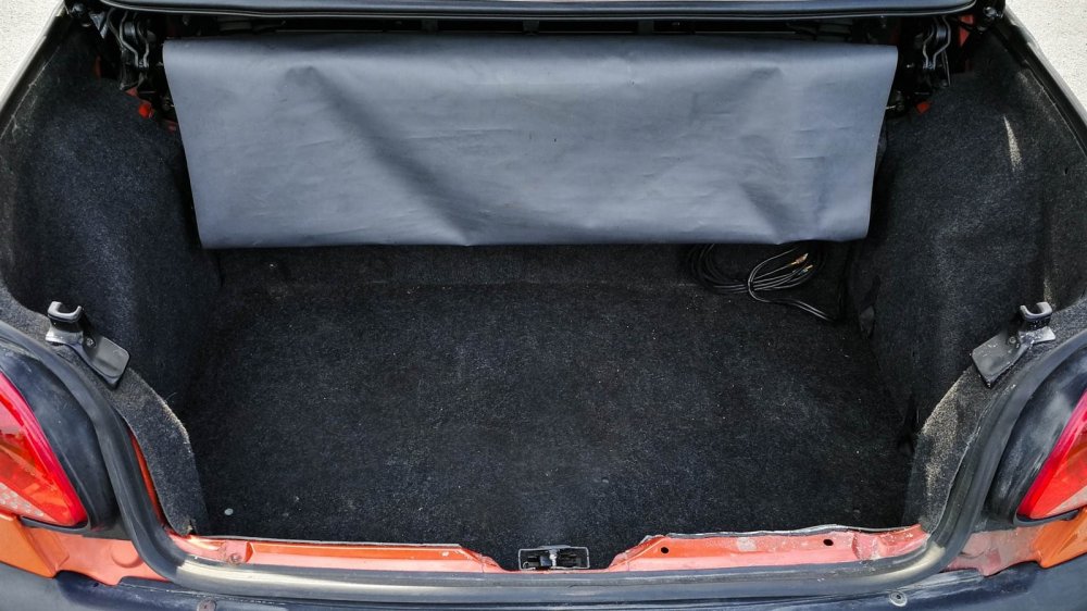 Салон подкупает практичностью: разнообразные ниши и полочки щедро разбросаны по всей жилой площади. Багажник при поднятой крыше легко проглотит два чемодана. Наличие второго ряда сидений в такой крохе — сильный ход в борьбе с конкурентами, пусть жить тут будут разве что дети, а скорее всего — всякий хлам, что лень закидывать в багажник. Зато такого нет даже у Mercedes SLK.