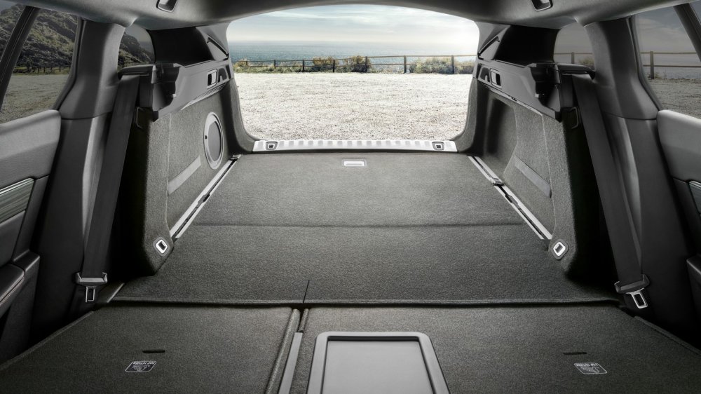 Доступ к багажнику облегчен – высота загрузки у универсала снижена на 6 см по сравнению с лифтбеком – 63,5 см от земли, а еще проем на 2,4 см шире. Кроме того, для пятой двери опционально предлагаются электропривод, или система открытия без рук. Объем – 530 литров, но при сложенных (в плоскую горизонтальную поверхность) задних сиденьях, он возрастает до 1 780 литров. «Порог» загрузочного отсека отделан нержавеющей стали во избежание износа.