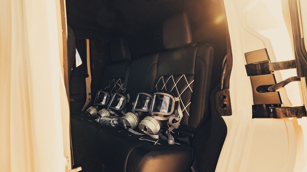 Просто так в салон внедорожника не попасть — двери имеют электромагнитные замки, а для ведения переговоров с условными захватчиками предусмотрели внешние громкоговорители и микрофон.