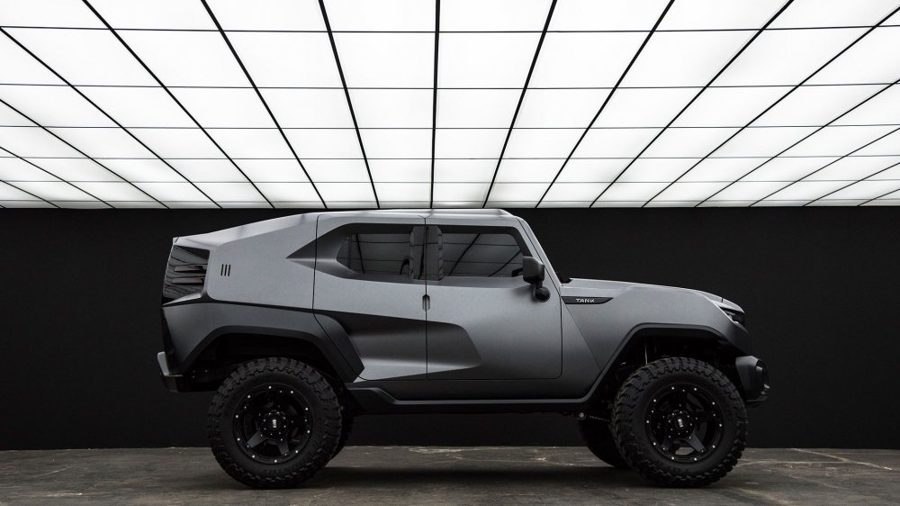 Автомобиль получил распашную конструкцию дверей, инфракрасную систему ночного виденья и подключаемый полный привод. В компании отмечают, что дизайн Tank выполнен в военной стилистике, но внедорожник предназначен для гражданского использования.