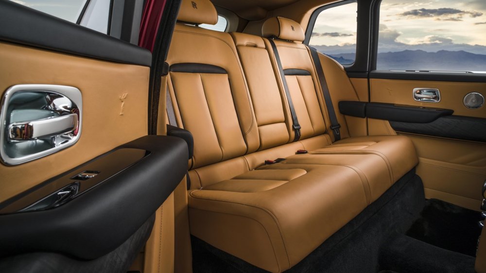 В стандартном исполнении Cullinan укомплектован нераздельным задним диваном, но в качестве опции предлагается Individual Seat – разделенные центральной консолью два индивидуальных пассажирских кресла. В консоль интегрирован шкафчик для напитков с декантером, бокалами для виски и шампанского, а также холодильником.