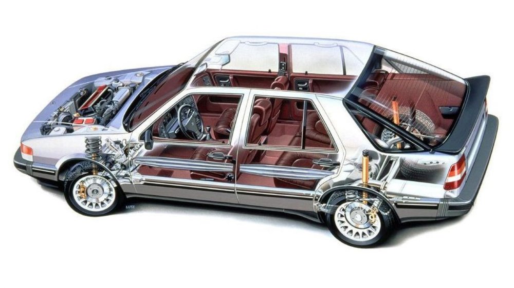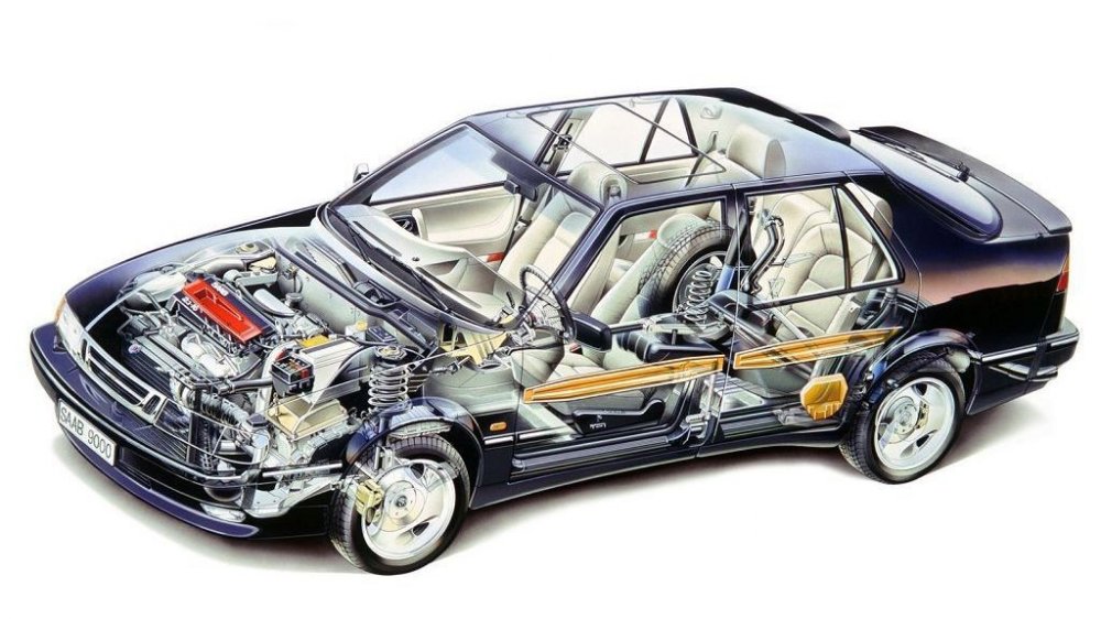 Однако Saab 9000 получил оригинальную заднюю подвеску, а в его конструкции появилось множество собственных решений – в частности, теоретически взаимозаменяемые с Фиатом и Лянчей двери имели собственную силовую структуру для лучшей защиты от боковых ударов. Другим было и основание передка – опять же, из соображений безопасности.