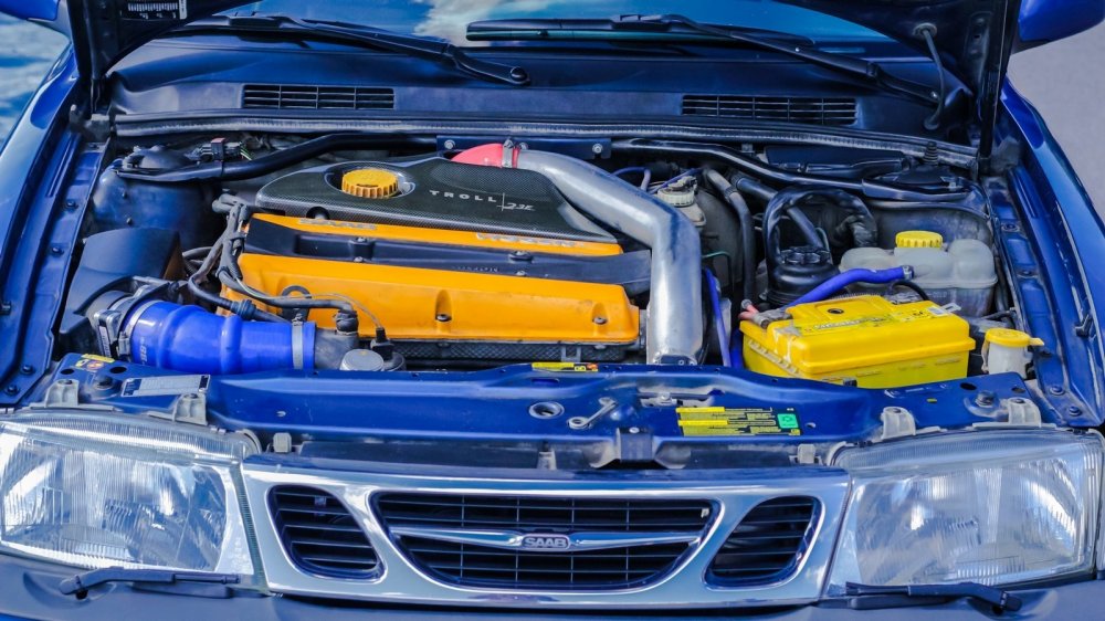 Но целью было максимально приблизить купе к образу топ-модели. Поэтому ухоженный двигатель B205R, успевший к тому моменту пережить легкий чип-тюнинг, уступил место «четверке» 2,3 Turbo от авто 2005 года с пробегом 85 000 км. Ради надежности мотор получил усиленные поршни от Saab 9000, а все остальное, включая прокладки и шатуны – новый оригинал. Перебрана головка блока. Установлен увеличенный коллектор под турбину и алюминиевый интеркулер, новые патрубки наддува и охлаждающей жидкости, новый МАФ, оригинальный радиатор охлаждающей жидкости. Расчетная мощность благодаря прошивке от Hirsch Performance – 280 л.с., соответственно, поставлен бензонасос из расчета на 300 л.с.
