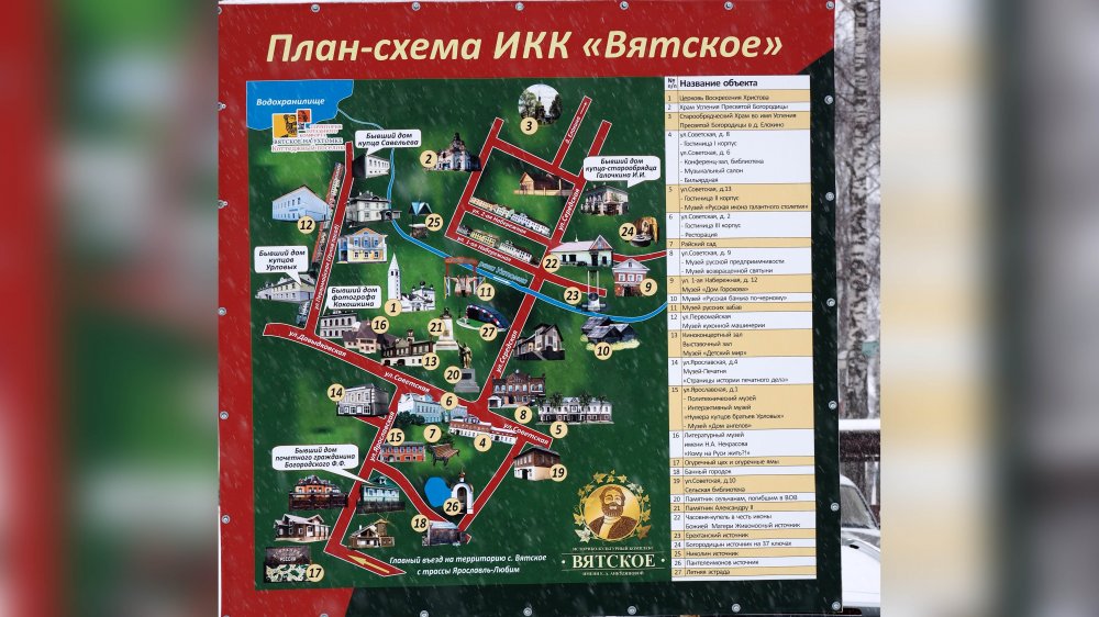 Потом была революция, местные крестьяне советскую власть не признали и приняли участие в ярославском восстании, которое, как известно, было подавлено. Потом в селе был организован колхоз, ставший преуспевающим многоотраслевым хозяйством. Но в 90-е у колхоза начались финансовые проблемы, и он был признан банкротом. В общем, неизвестно, что было бы с Вятским, но в начале двухтысячных в селе купил дом крупный ярославский предприниматель Олег Жаров. Купил, отреставрировал исторический особняк XIX века… Да и влюбился в это село, которое хотело стать городом. Вот тогда и пришла ему в голову мысль превратить Вятское в туристический центр: привести в порядок исторические здания, которых в Вятском хватает, организовать музеи…