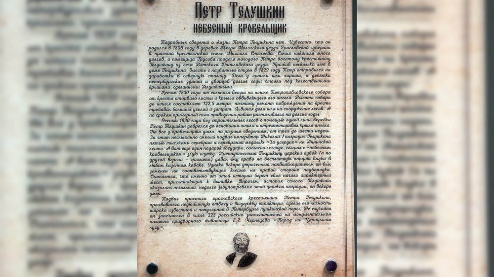 Жило-было в Ярославской губернии богатое зажиточное село. Оно считалось «огуречной столицей» — уж больно хороши были местные соленые огурчики. Кстати, большая их часть шла на торги в Архангельск, и только в 1906 году из Вятского было вывезено около 8 190 тонн огурцов! Но особенно знамениты были местные отхожие артели — кровельщиков и печников. Работали эти артели в основном в Петербурге и славились своим непревзойденным мастерством. Особую известность приобрел «небесный кровельщик» Петр Телушкин, который в 1831 году осуществил сложнейший ремонт крыла ангела, венчавшего шпиль Петропавловского собора, и стал, таким образом, первым в России промышленным альпинистом.