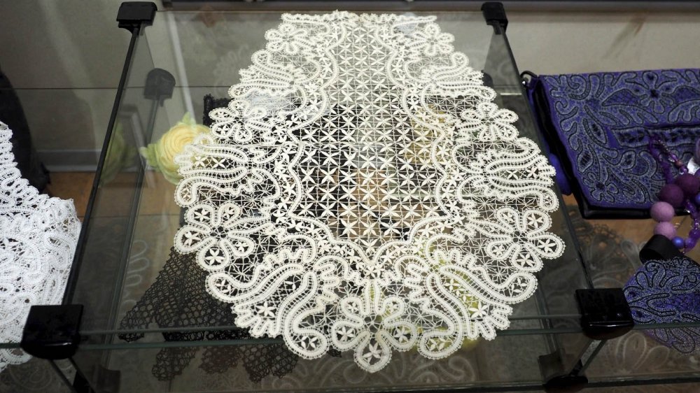 Вологодское кружево — это, конечно, бренд. В кружевной мастерской мы посмотрели на то, как все это происходит, послушали, как ритмично перестукиваются коклюшки с намотанной нитью, как миллиметр за миллиметром нити превращаются в чудесное кружево. В общем, мы поняли, почему одно полноценное изделие, будь то пелерина или накидка, может стоить сотни тысяч рублей.