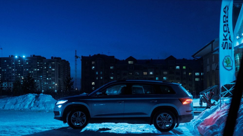 Наш маленький конвой состоит из одинаковых Skoda Kodiaq по одной простой причине: именно такой автомобиль останется работать в «Детской деревне». А что, вполне удачный выбор для автомобиля, обслуживающего семейный детский дом. Салон большой, объемистый, семь посадочных мест и полный привод, обеспечивающий всесезонность и всепогодность. Ну а работа для такой машины всегда найдется.