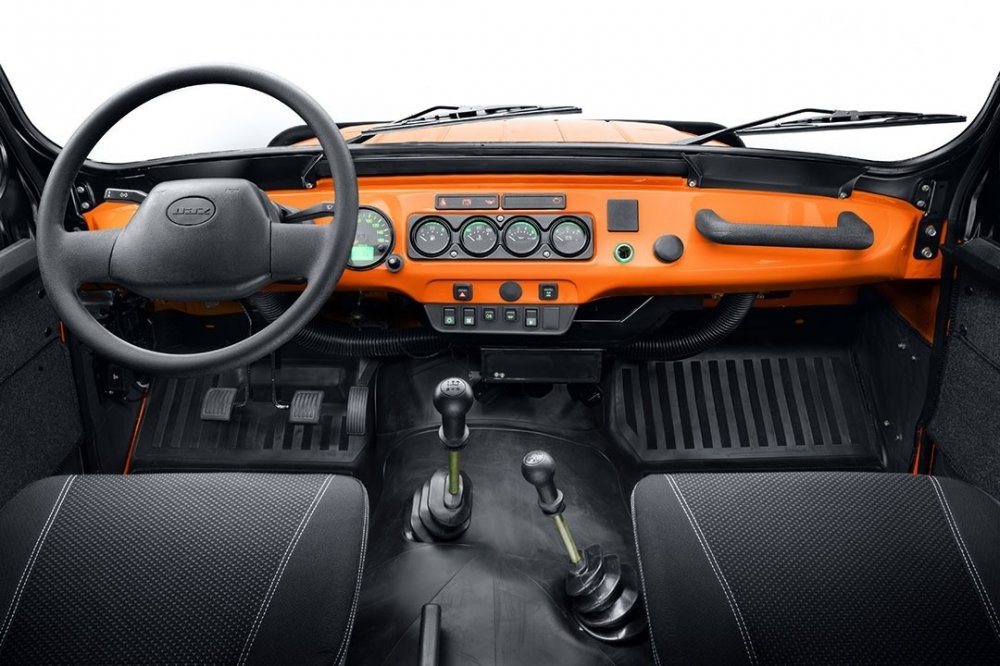 Версия Экспедиция отличается от версии Классик с блокировкой в первую очередь сертифицированным навесным оборудованием (то есть с постановкой машины на учёт проблем не будет): силовые бампер и пороги, кенгурятник, электрическая лебёдка, защита рулевых тяг, экспедиционный багажник на крыше, откидной задний борт, фаркоп, пластиковые расширители колёсных арок. Окраска кузова – двуцветная: оранжево-чёрная, коричнево-серая либо хаки. Штампованные колёсные диски окрашены в черный цвет и обуты в шины BFGoodrich All-Terrain 235/85 R16, которые позволили увеличить дорожный просвет с 210 до 241 мм. В салоне покупатель обнаружит обитые водоотталкивающей тканью сиденья (передние – с подогревом) с двойной белой прострочкой.