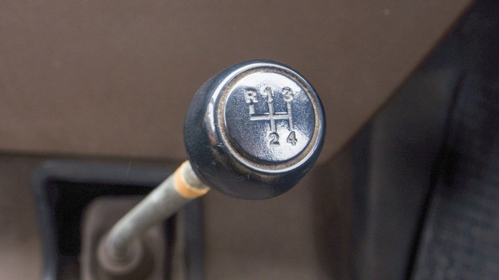 Изогнутый рычаг переключения передач двигает здоровенную тягу, идущую через весь кузов — коробка-то тоже сзади, пристыкованная к мотору. Ходы хоть и размашистые, но люфтов нет, передачи втыкаются мягко (спасибо синхронизаторам) и безошибочно, даже с учётом того что работать приходится левой рукой (машина ведь праворульная).