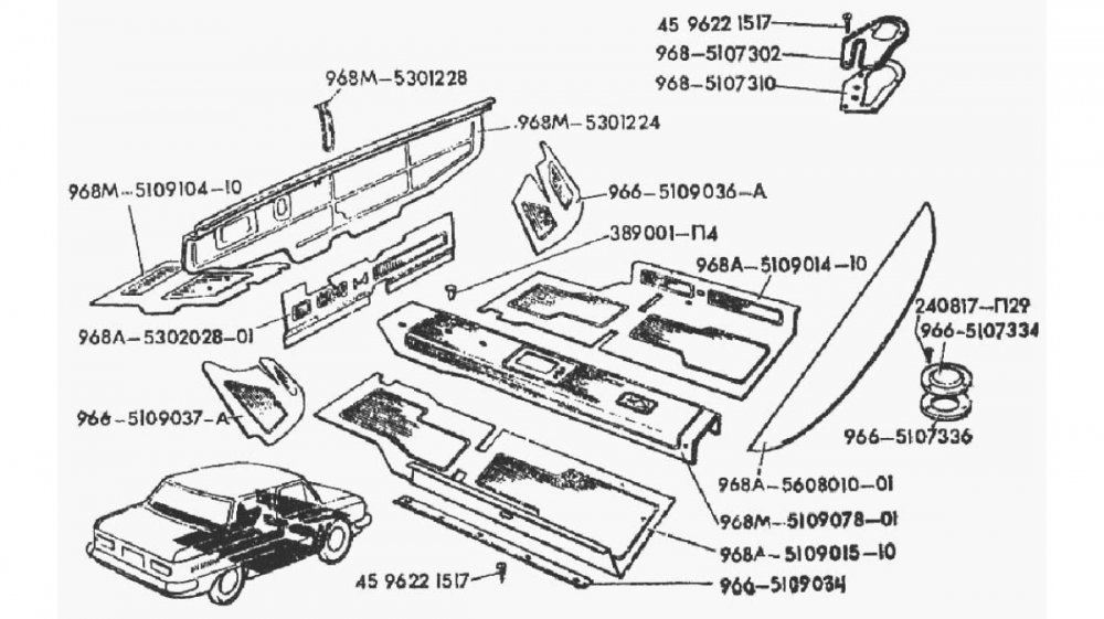 | Кресла ЗАЗ-968А (первое фото) и ЗАЗ-968М немного отличались по виду, причем у «ашки» они были более «жигулёвскими». Но по понятным причинам их снабдили механизмом откидывания вперёд | |