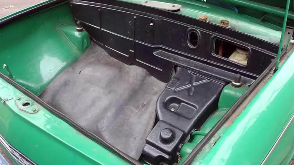 Запасное колесо и оба комплекта инструмента из багажного отделения перенесли — в моторный отсек и салон соответственно. «Разгруженный» багажник вдобавок облагородили пластиковыми накладками и резиновым ковриком, закрыв таким образом не только металл кузова, но и детали рулевого управления, а также аккумулятор.