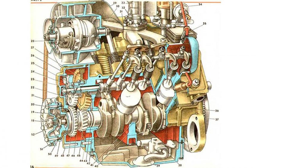 | Двигатель МеМЗ-968 в разрезе |