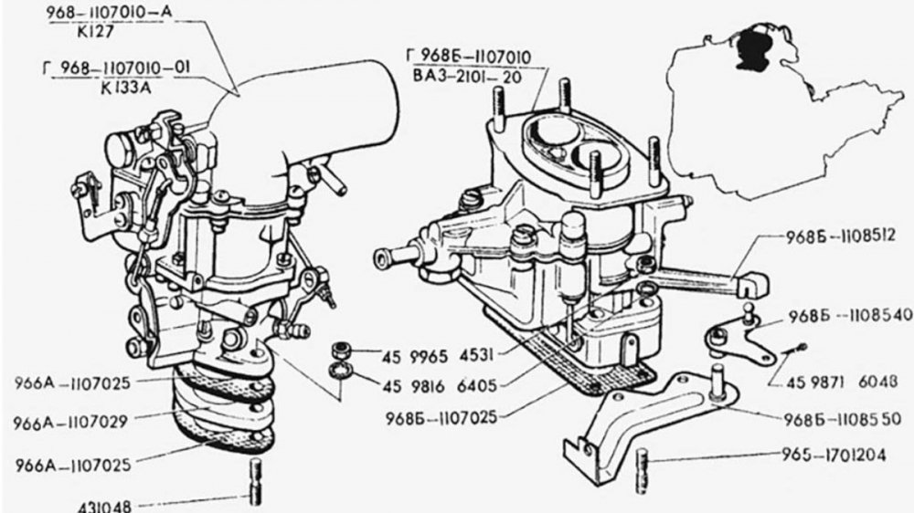 | «Чисто жигулевский» карбюратор ДААЗ отличался индексом 2101-1107010 (на Запорожце – 2101-20) |