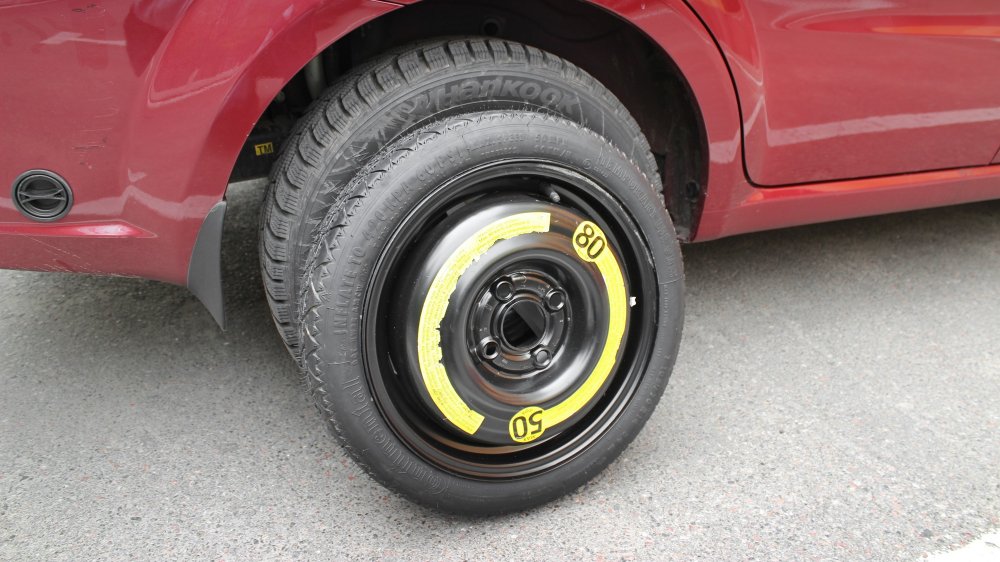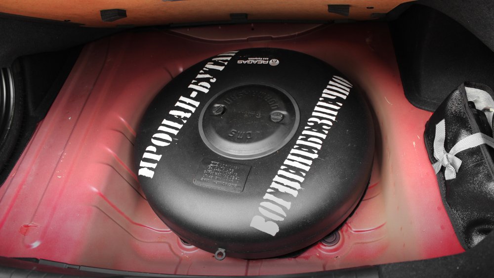 Багажный отсек достаточно вместителен, в походном положении его объем равен 400 литрам. Увеличить это значение можно, сложив спинки второго ряда. Важный момент, который обычно ставят в упрек «газовым» автомобилям их недруги: место «запаски» под полом багажника действительно занято тороидальным баллоном ГБО. Но машина с завода комплектуется компактной «докаткой», которую производитель ловко пристроил так, что она не мозолит глаза: вертикально в левом крыле, как у классических «Жигулей». Таким образом, потери для полезного объема минимальны.