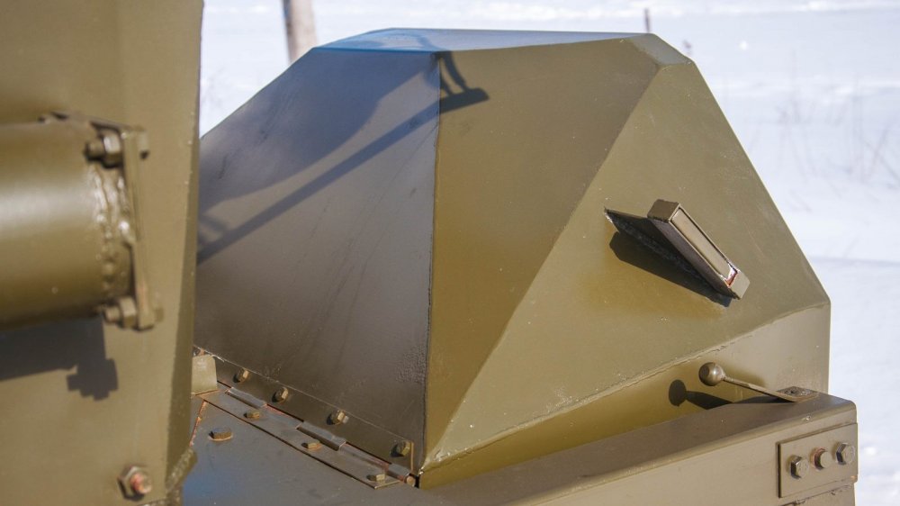 Обратите внимание на крышу кабины. На ней лежат бронированные панели, которыми в боевом положении закрываются стёкла кабины.