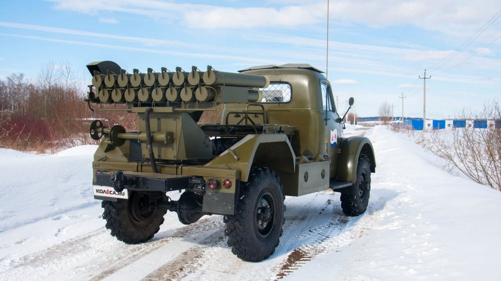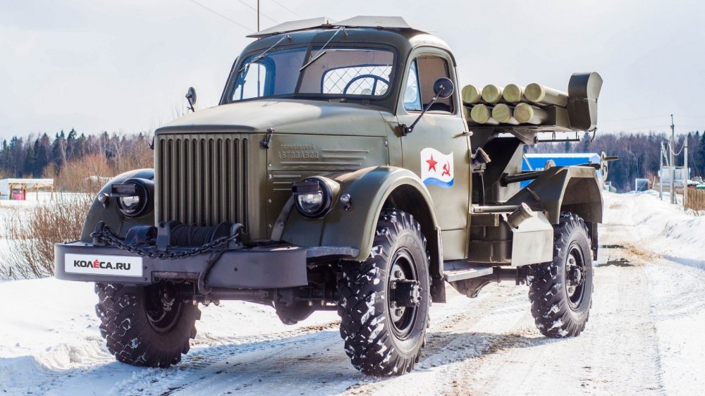 Ну, а наш сегодняшний экземпляр — самый настоящий солдат с системой залпового огня. О ней мы поговорим чуть позже, а пока посмотрим на ГАЗ-63 вживую.