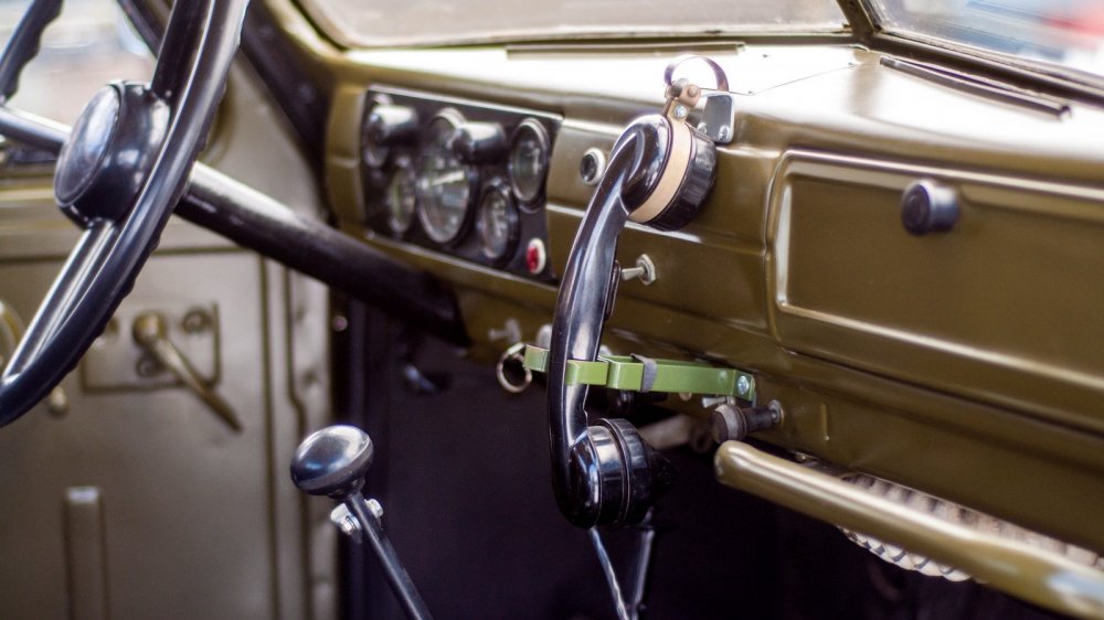 “Собачка” на рычаге коробки передач вызывает умиление. Но не потому, что она не даёт нечаянно включить заднюю передачу вместо четвёртой, а потому что весь этот рычаг перекочевал сюда прямиком из “полуторки” (Форда-АА, если хотите, производство которого в США было закончено в 1932 году). У нас этот рычаг без изменений простоял до конца выпуска ГАЗ-52 в 1993 году. Ну, как говорится, стабильность — признак мастерства.