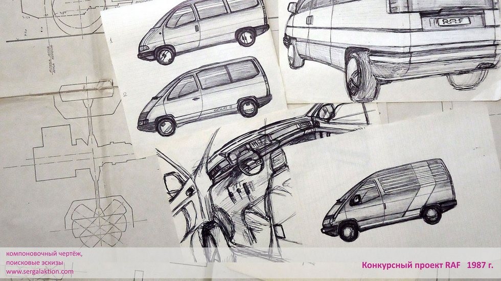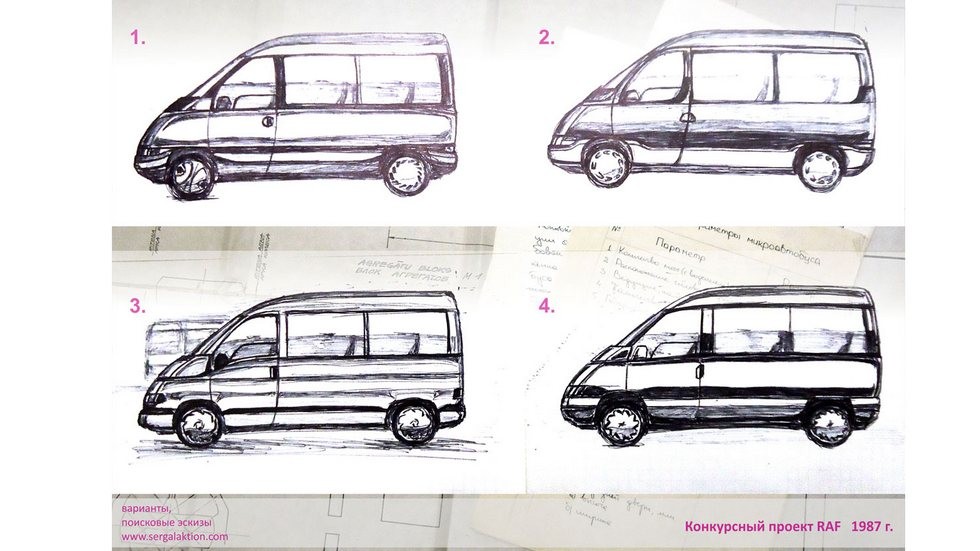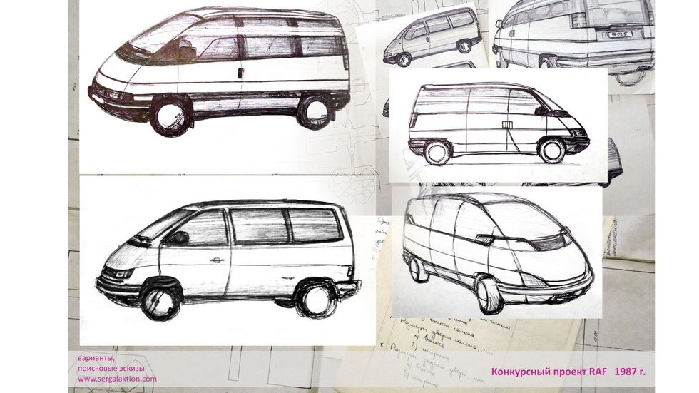 Эскизы Сергея Галактионова за 1989 год. Именно так почти 30 лет назад дизайнер представлял себе семейство переднеприводных однообъемников РАФ-М2