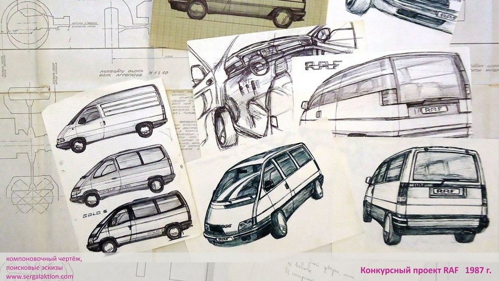 Дизайнеры ИТЦ РАФ иногда «для себя» делали эскизы на тему коллег по цеху. Вот как RAF M1 видел Сергей Галактионов, который разрабатывал переднеприводный RAF M2