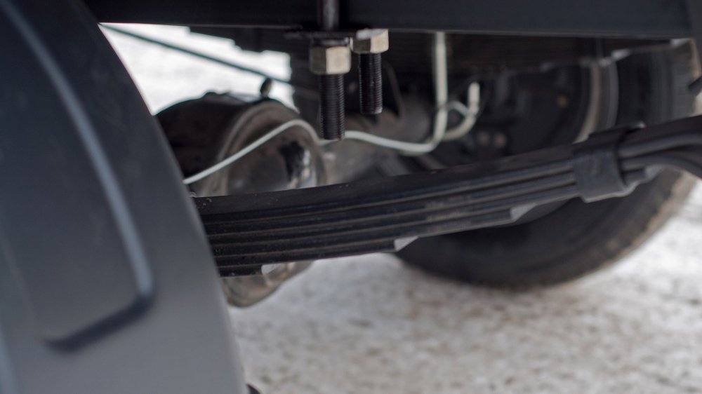 А вот в задней подвеске кое-что может удивить. Это “кое-что” — рессоры от уазика. Казалось бы: зачем этому малышу по шесть листов в каждой рессоре? Ответ прост. Конструкторы знают, где живут, и совершенно справедливо полагают, что если объявленная грузоподъёмность составляет тонну, грузить в “Шмеля” будут либо пока место в кузове не закончится, либо пока рама не треснет. Поэтому некоторый запас необходим. Кстати, на испытаниях “Шмель” вёз 1,4 тонны и не развалился. Но это так, информация к размышлению.