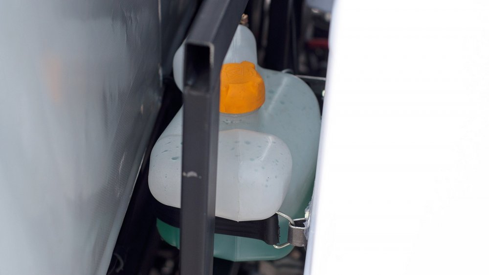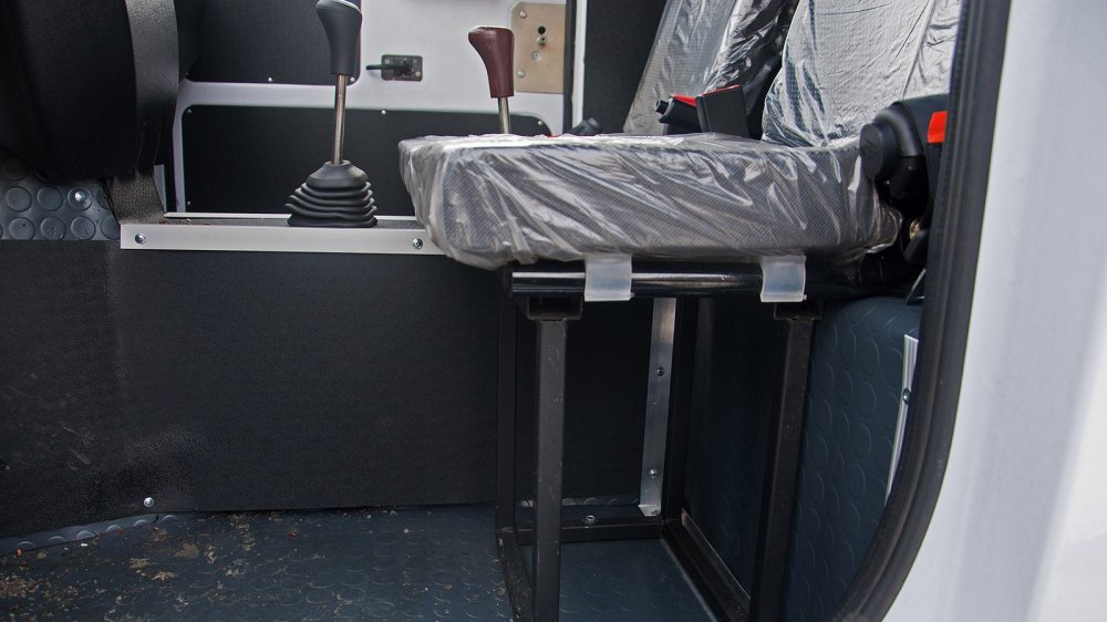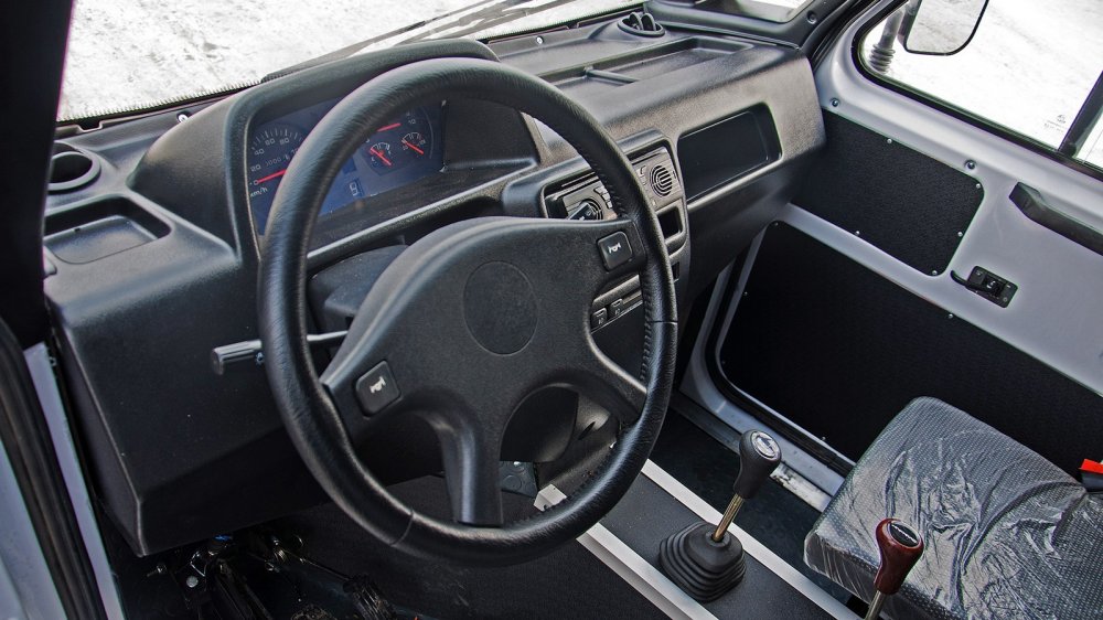 Под стулом (назовём это так) пассажира стоит аккумуляторная батарея, перед его ногами — бачок омывателя. Удобно, конечно… Особенно если учесть, что к двигателю можно подобраться лишь сняв кабину. Хорошо, что с этим легко справляется один человек. И будет просто здорово, если этот же человек будет владельцем этой машины, потому что спереть с неё можно много всякого. Тут и расширительный бачок на улице стоит, и бензобак… Другое дело, что всё это добро никому и даром не сдалось: “Шмель” у нас пока не так популярен, как Логан или Солярис. Пока.