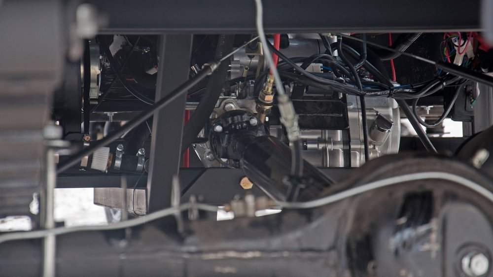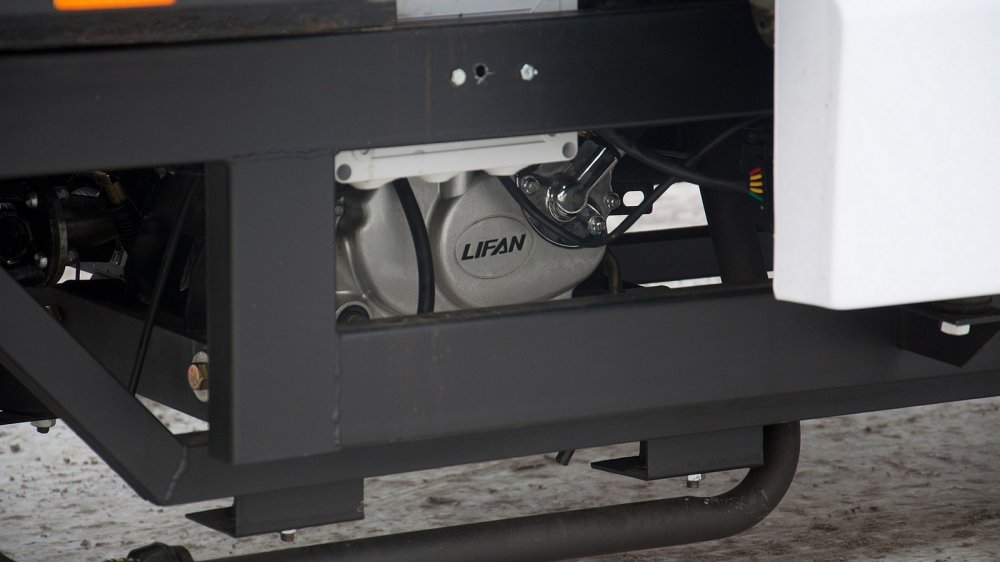 Мотор, как я уже говорил, китайский. Это Lifan 163 ML мощностью 20 л.с. Объём — 200 “кубиков”, максимальный крутящий момент — 15 Нм. У него жидкостная система охлаждения и даже неплохая репутация (прошлое этого мотора уходит к светлым корням Honda образца 1975 года). Если вы ещё не совсем шокированы характеристиками мотора, до вот вам контрольный удар с ноги в челюсть — это карбюраторный двигатель. Олдскул как он есть.