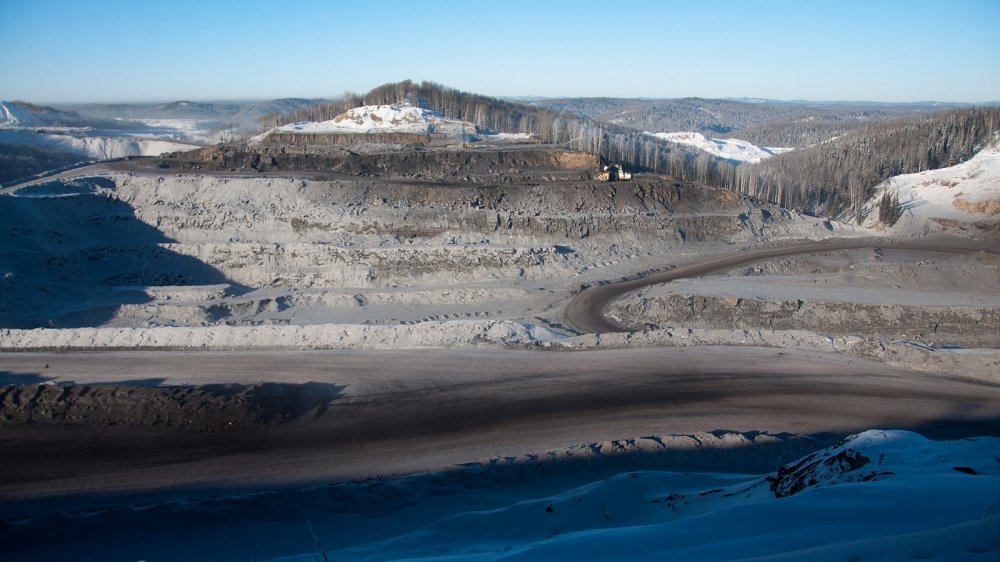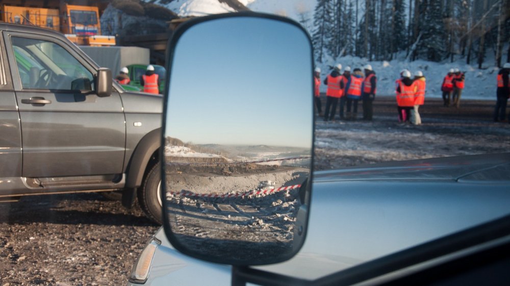 Снег вокруг приобретает странный серый оттенок. Это — верный признак приближения к угольному разрезу. Распадский угольный разрез — это шахта открытой добычи: здесь применяют систему глубокой разработки пластов. Прежде чем посетить сам разрез, проходим краткий инструктаж (за ограждение не заходить, вниз не прыгать, тротил не тырить, если что-то падает на голову — сообщать руководству), надеваем средства защиты (средства́, как почему-то говорят профессионалы), садимся по машинам и едем смотреть, как тут дают стране угля.