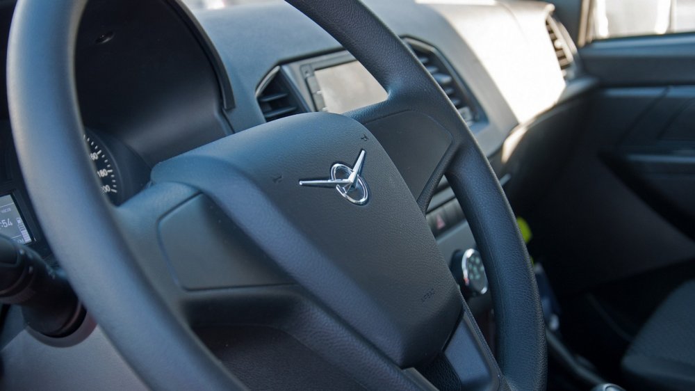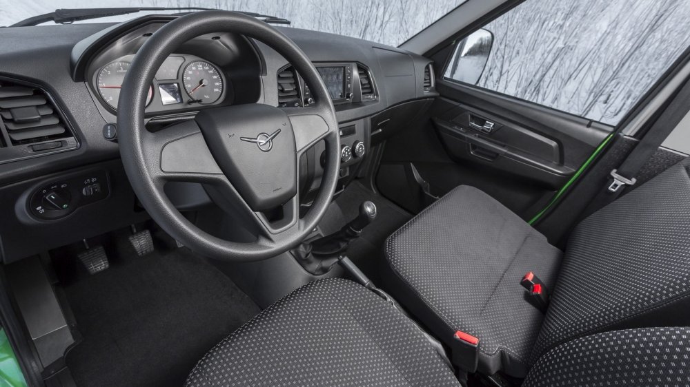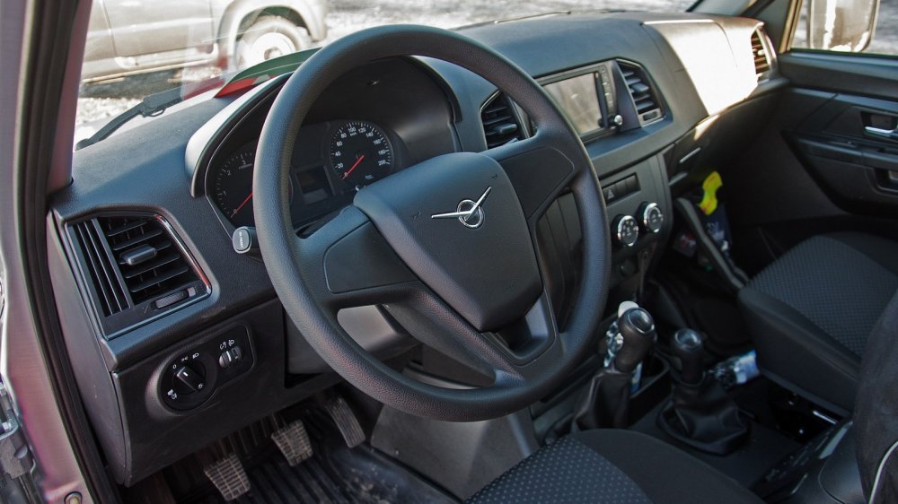 У водителя есть подушка безопасности. У меня (то есть, у пассажира) её нет. Почему? Об этом мы потом спросили у заместителя генерального директора по развитию и директора Научно-технического центра УАЗ Евгения Галкина, который самоотверженно мотался с нами и отвечал на целый поток умных и не очень вопросов. Евгений Анатольевич сказал, что установка подушки в принципе возможна, но ставить её не будут. Дело в том, что на заднеприводных машинах кабина трёхместная (хотя третье место — скорее маркетинг, долго там втроём сидеть сложно), и унифицировать подушки с нашей двухместной кабиной невозможно. Установка подушки может очень значительно повысить стоимость машины, которая сейчас приблизительно на сто тысяч ниже, чем у ближайшего конкурента (называть его не буду, сами догадаетесь). Поэтому в ближайшем будущем на этом месте появился ещё один бардачок, а не подушка. Кстати, тот бардачок, который уже есть — охлаждаемый. Зимой в Сибири нам это без надобности, но лето когда-нибудь всё же придёт, и он пригодится.